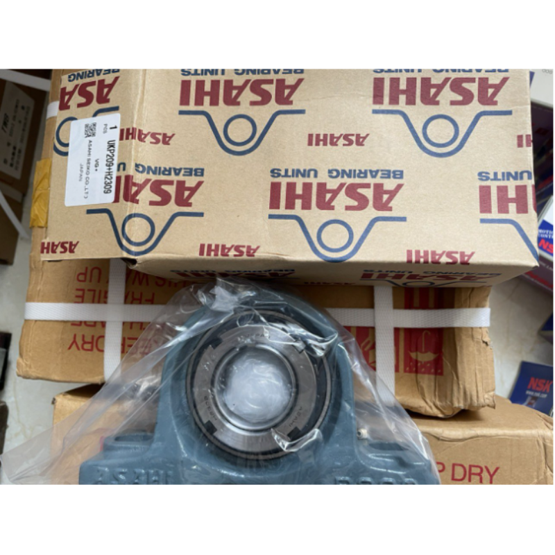 - Dễ dàng bảo trì: Thiết kế hộp chứa vòng bi pillow block bearing của ASAHI UKP209+H2309 giúp việc bảo trì và bôi trơn vòng bi trở nên thuận tiện hơn.