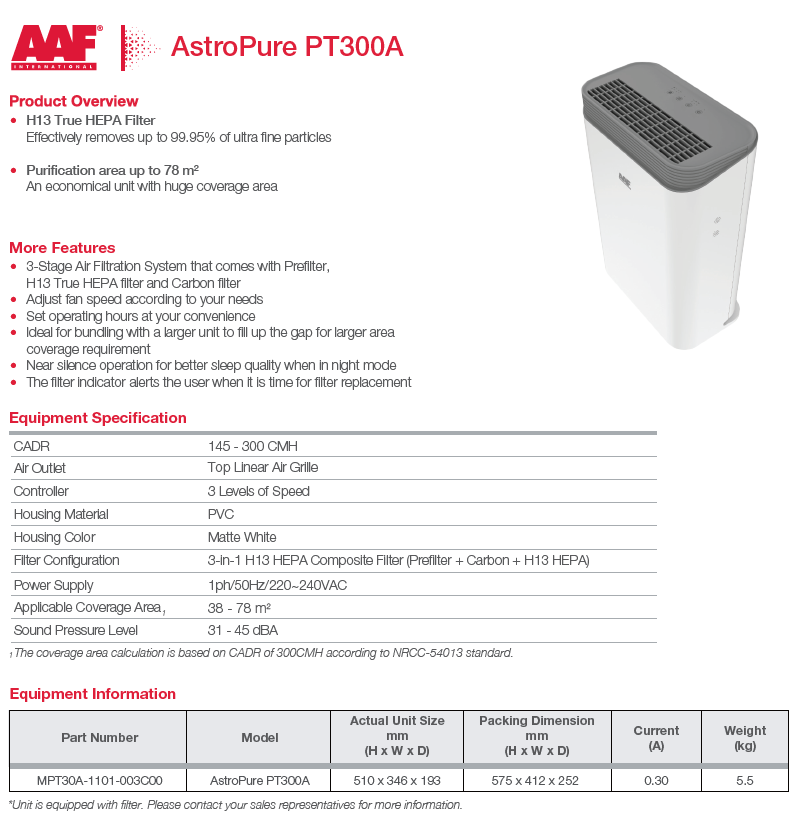 Trong 30 ngày sau khi nhận*AstroPure PT300A-11001-003C00