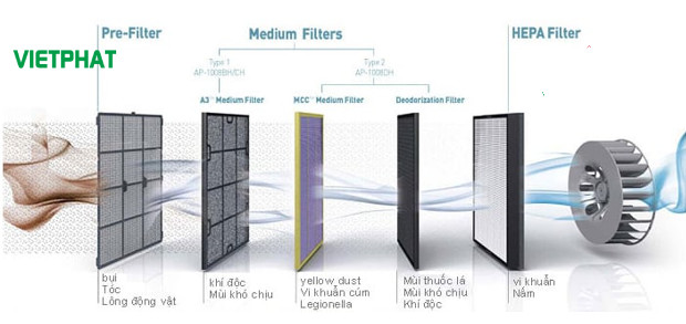 - Hộp chứa lọc: G1, G2, G3, G4, M5, M6, F7, F8, F9, E10, E11, H13, H14, U15, U16, U17