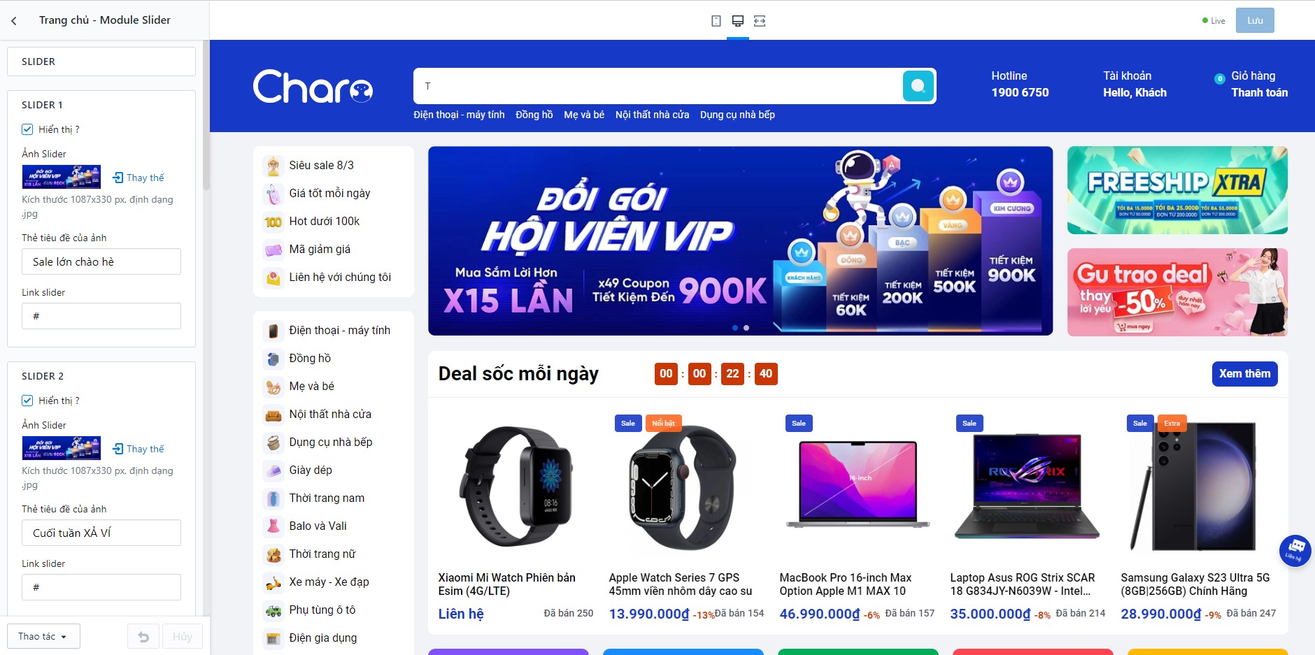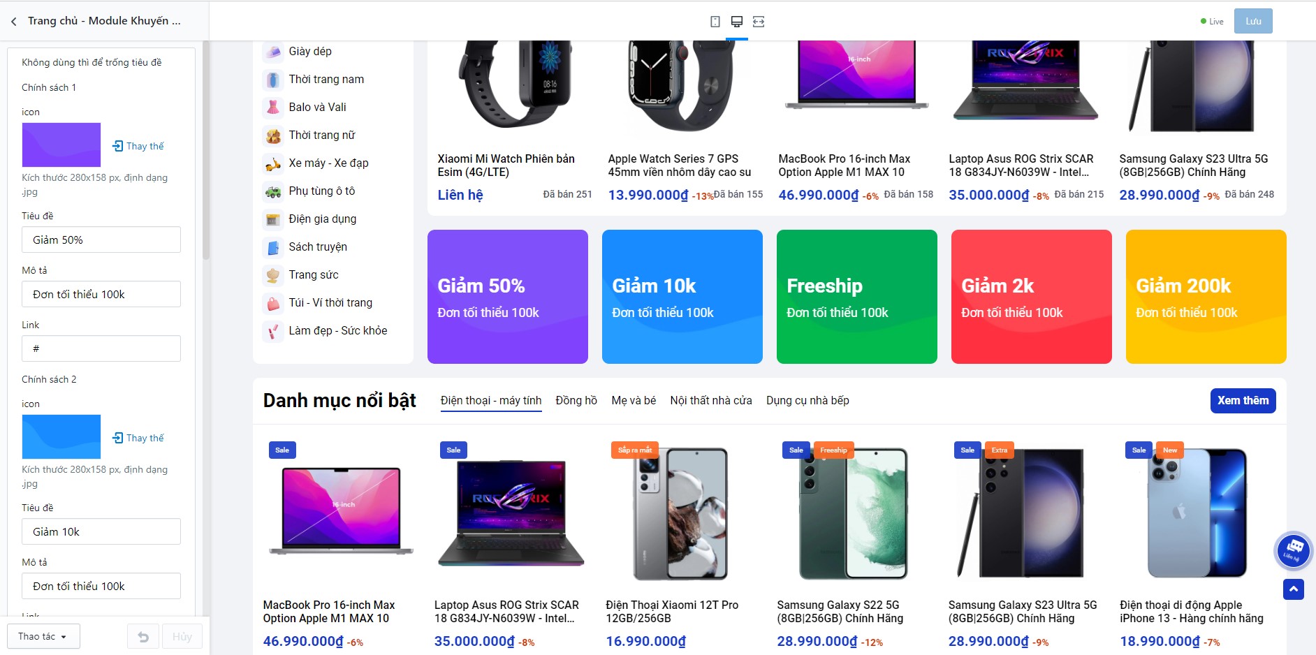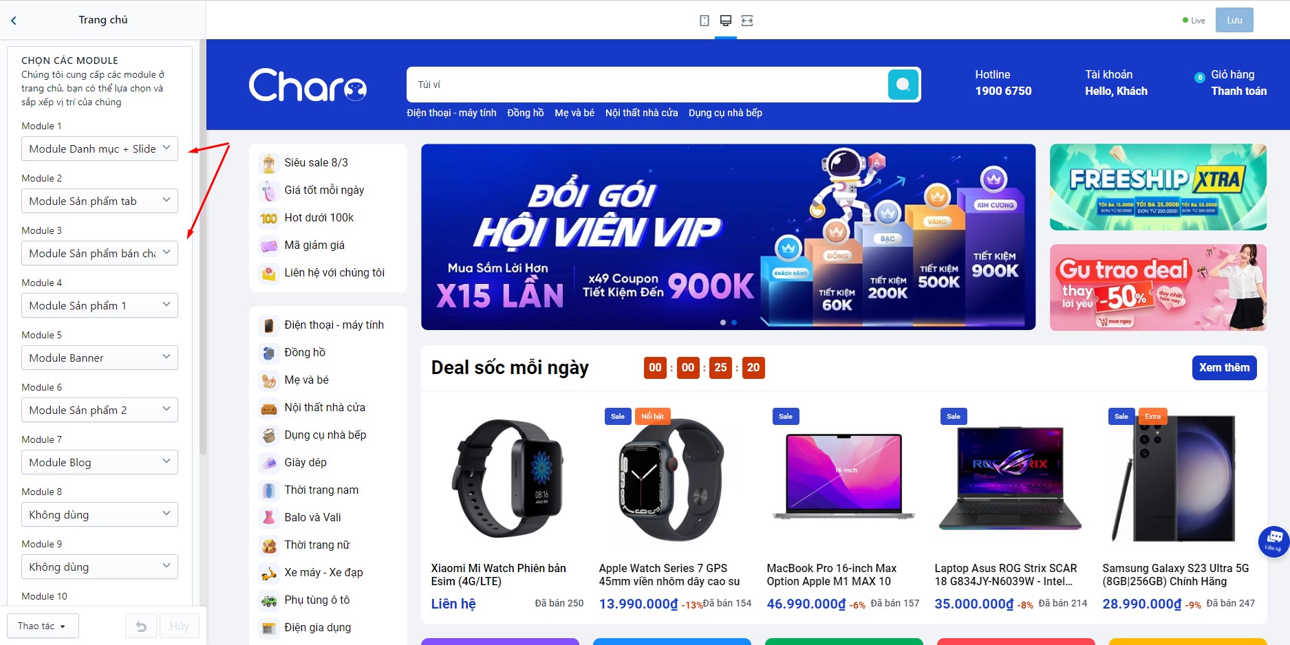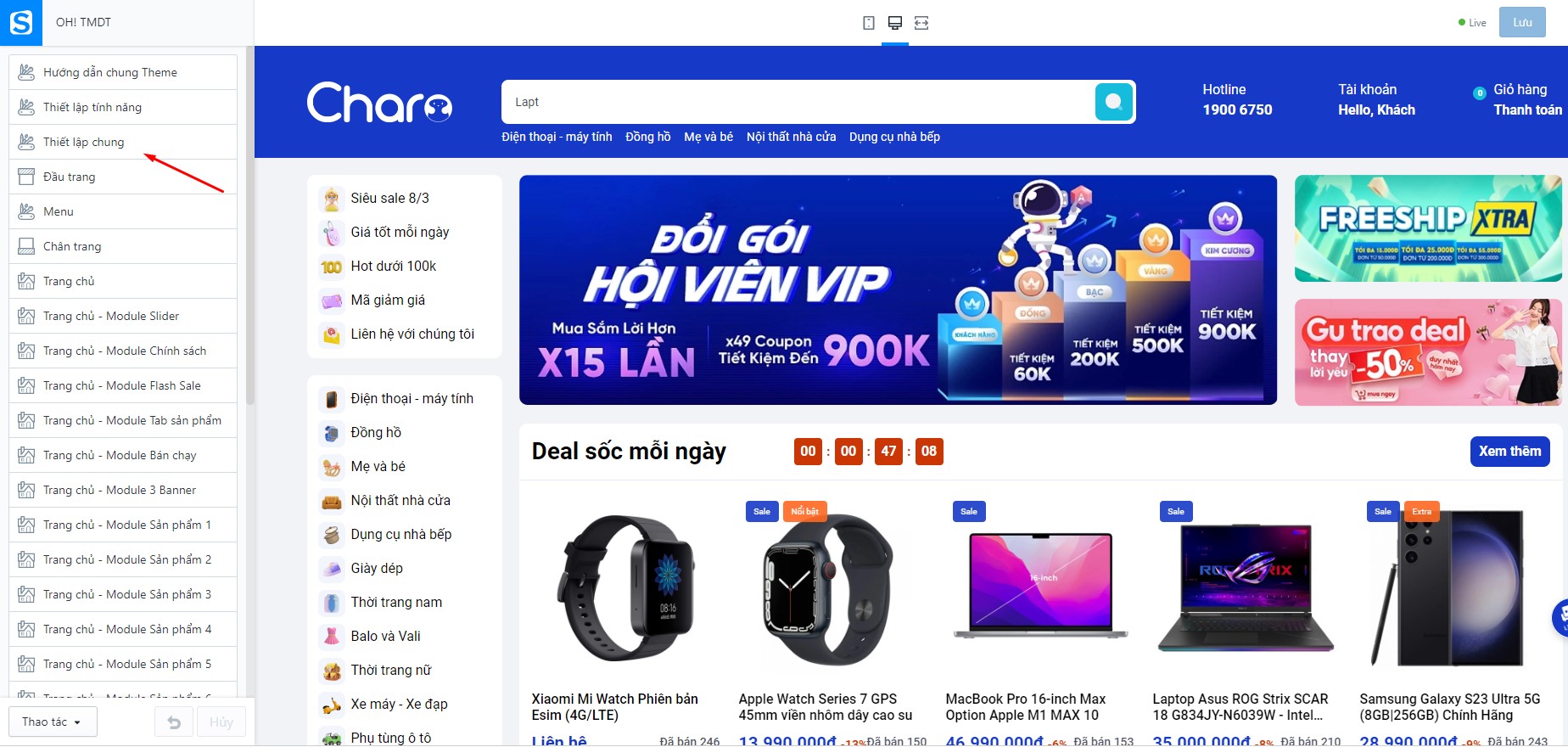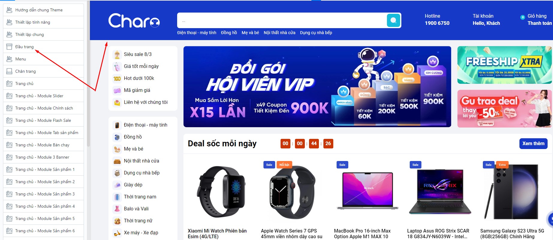 Để thiết lập Flash sale, bạn cần tìm đến Trang chủ - Module Flash Sale