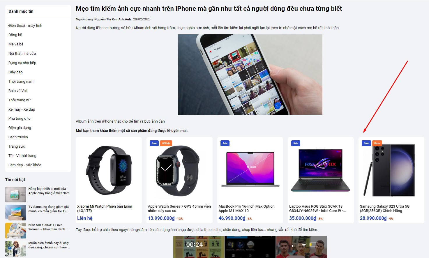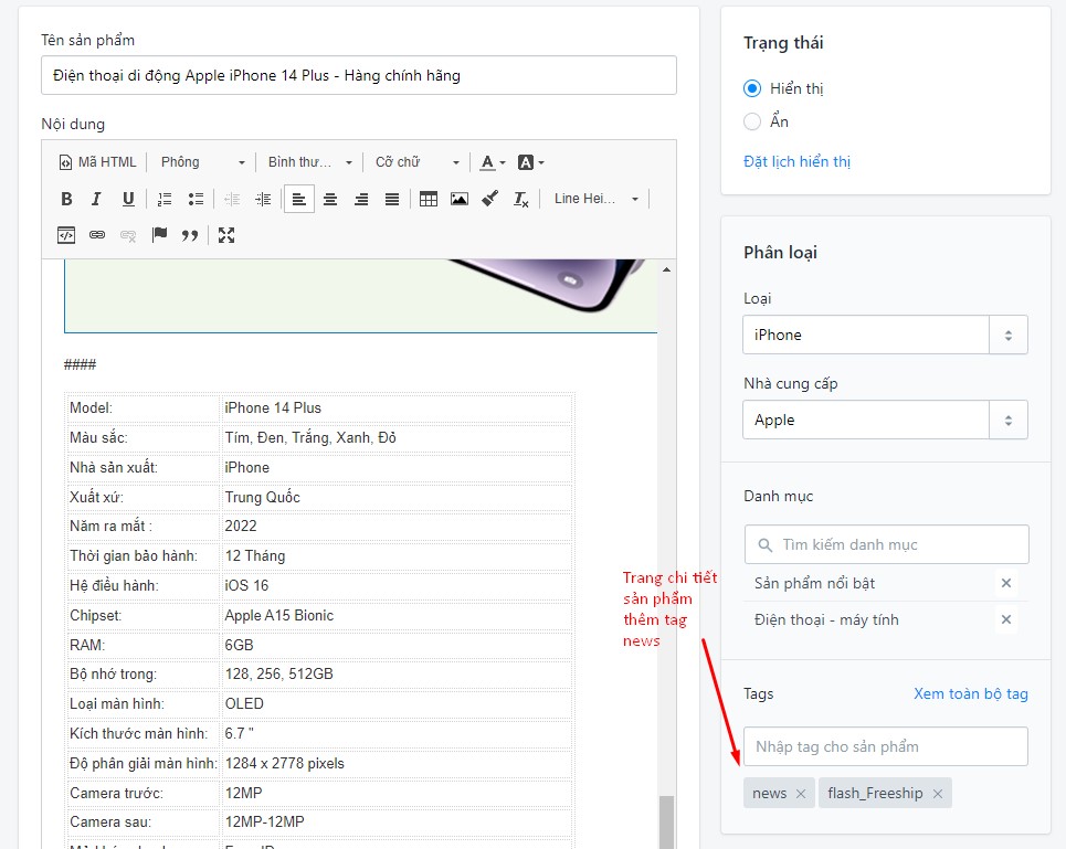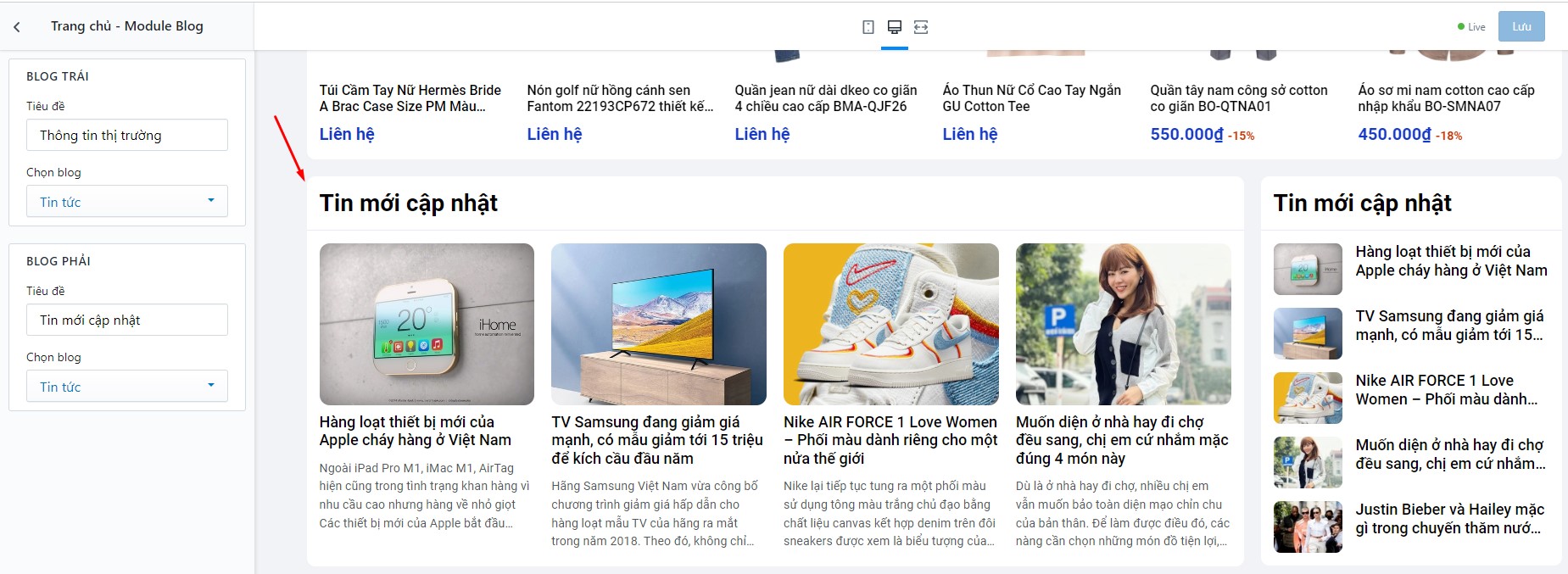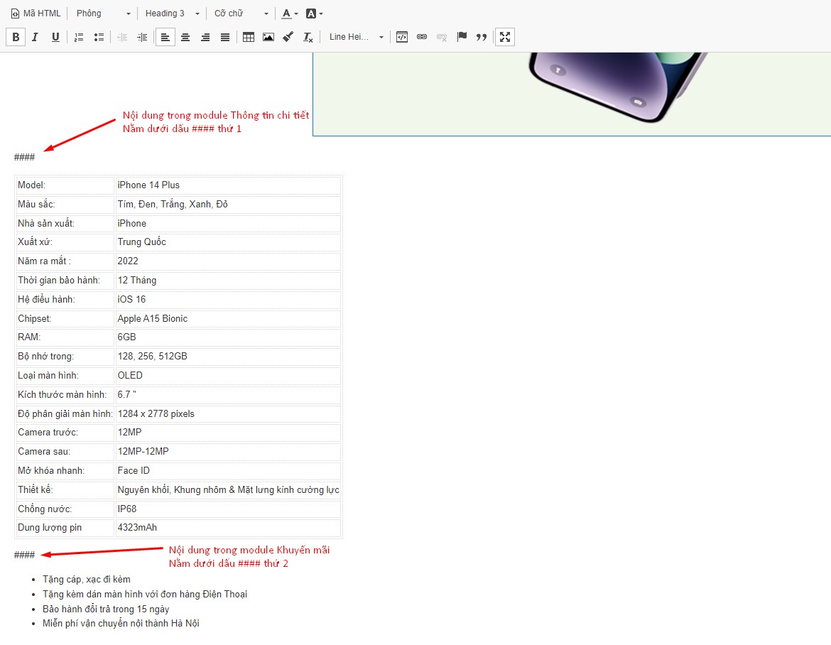 Thêm module sản phẩm vào giữa bài viết bằng cách thêm đoạn mã sau: