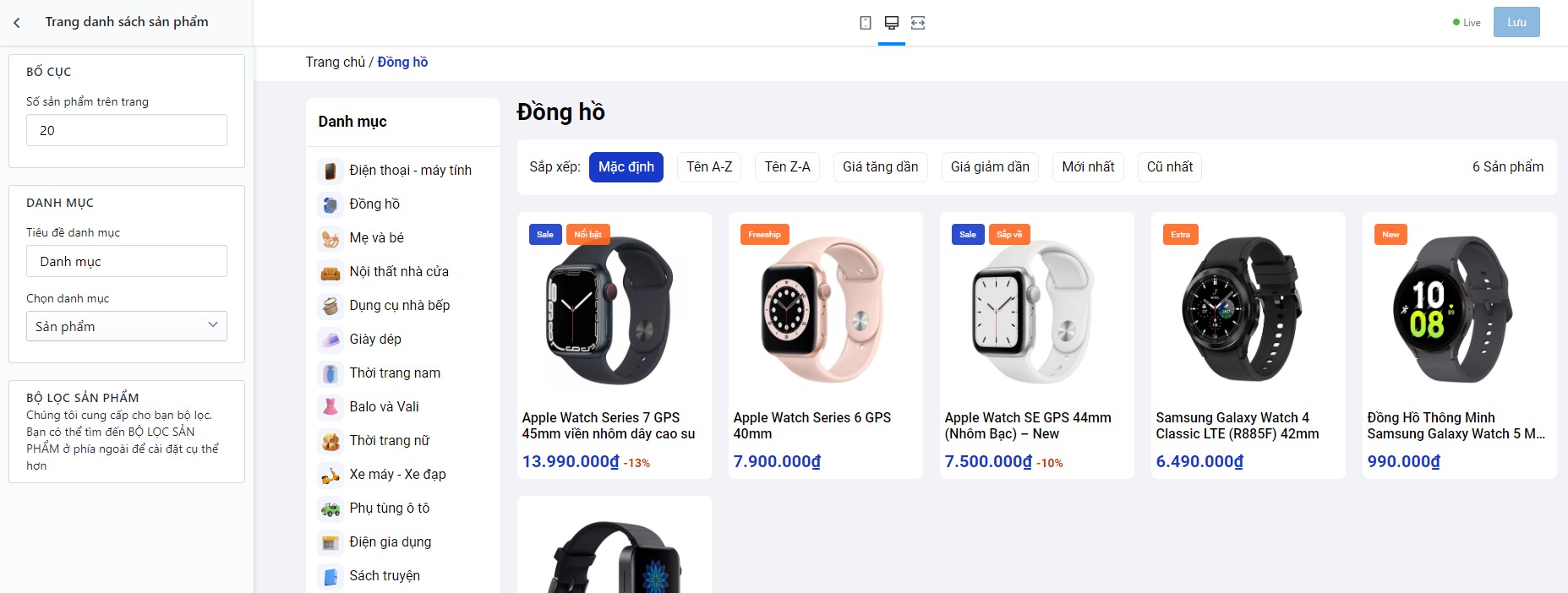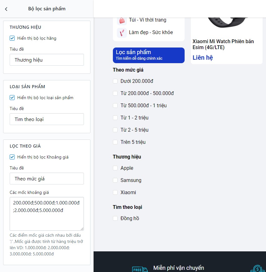 Bạn có thể tùy chỉnh bộ lọc ở trang danh sách sản phẩm