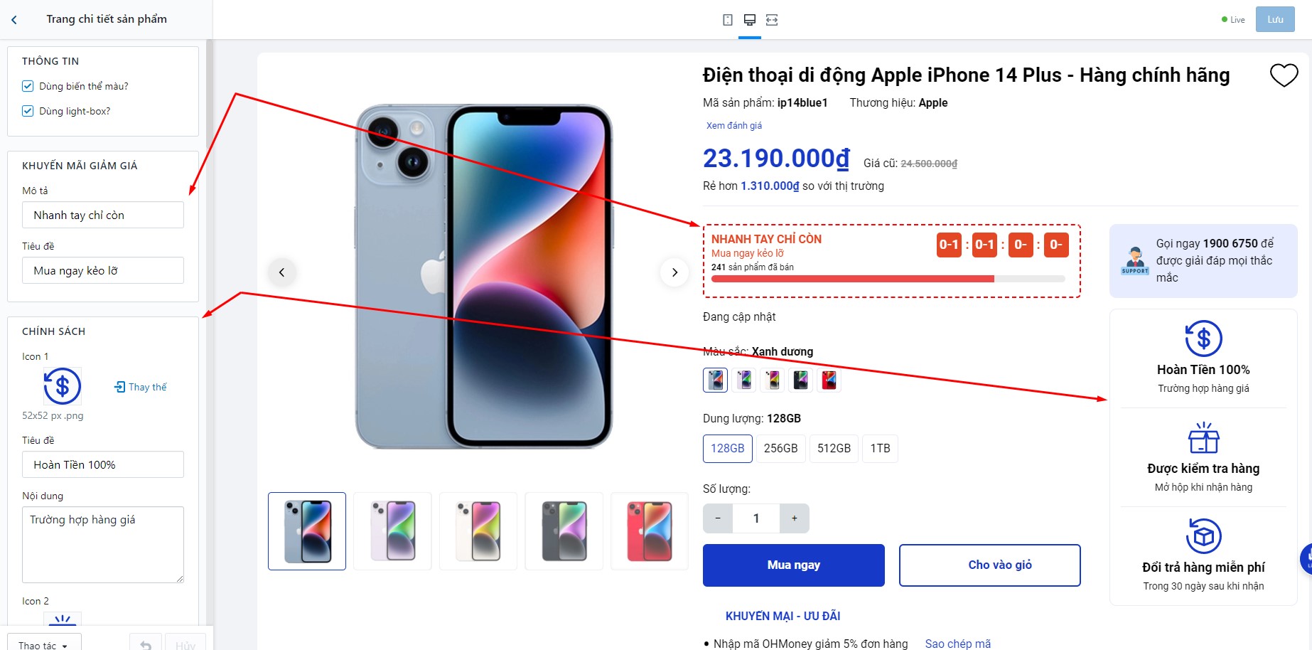 Chúng tôi cung cấp cho bạn quyền tùy chỉnh mạnh mẽ trang chi tiết sản phẩm. Để thiết lập trang này, bạn cần tìm đến TRANG SẢN PHẨM:
