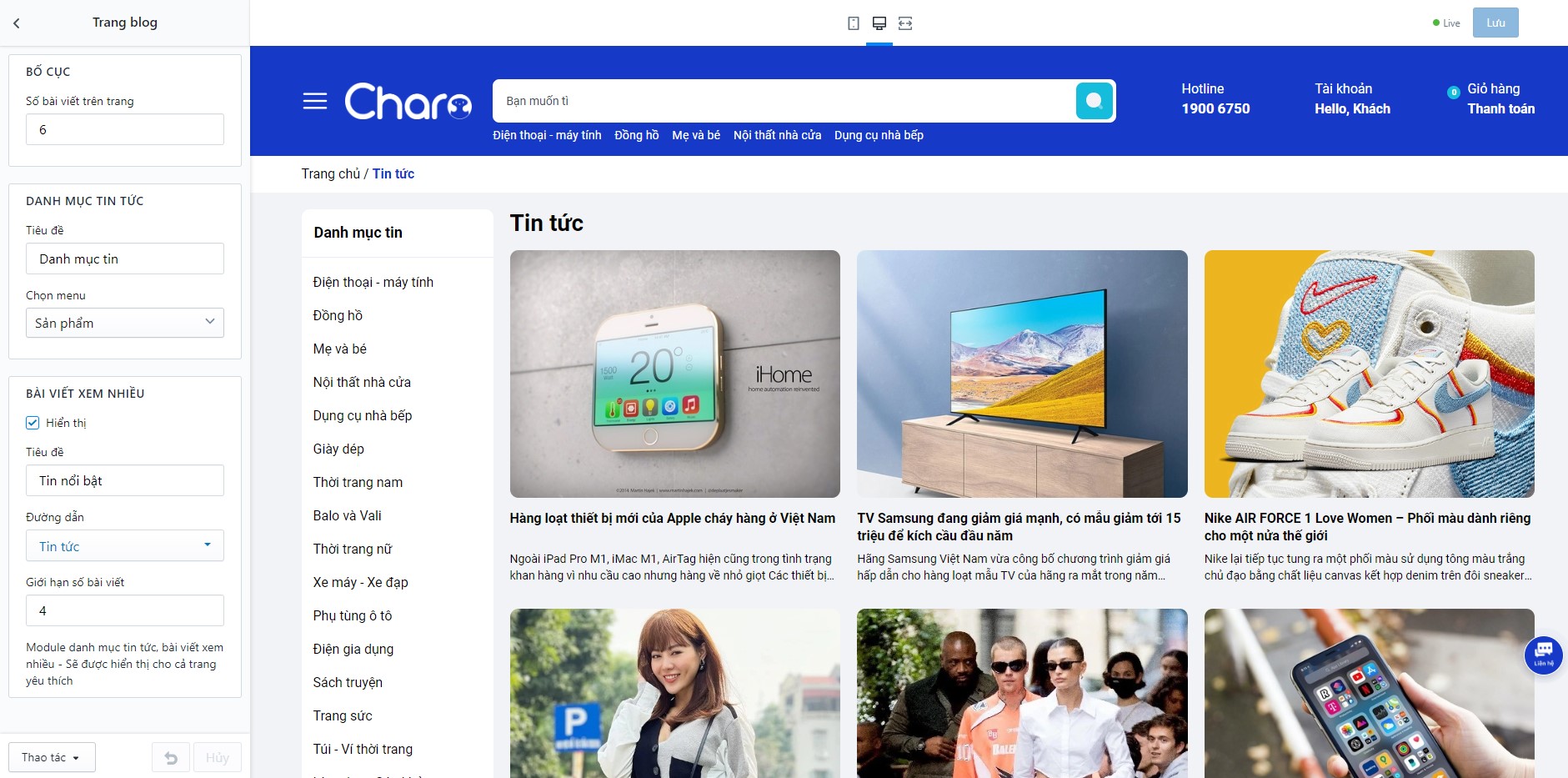 Để thiết lập Tin tức, bạn cần tìm đến Trang chủ - Tin tức