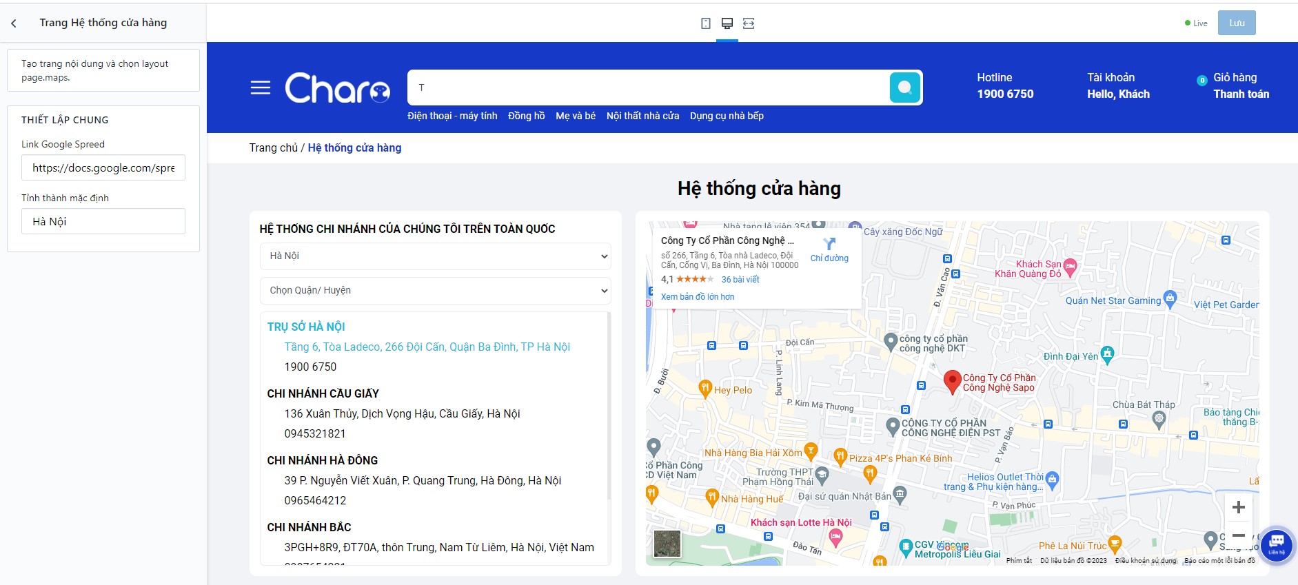 Để thiết lập bạn Tạo trang nội dung và chọn layout page.maps