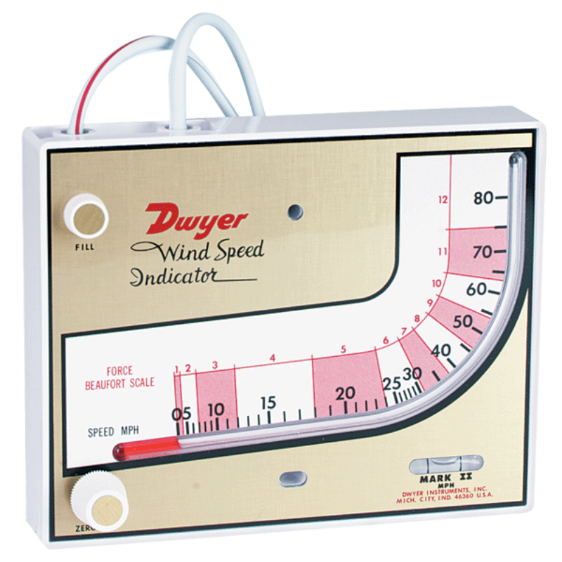 Chỉ báo tốc độ gió Series Mark II cho biết tốc độ gió trực tiếp trên thang đo chứa đầy chất lỏng ở cả Dặm mỗi giờ (0-80) và thang đo Beaufort (1-12). Cũng có sẵn là mô hình số liệu, giống như ở trên nhưng đọc 0-130 km mỗi giờ.