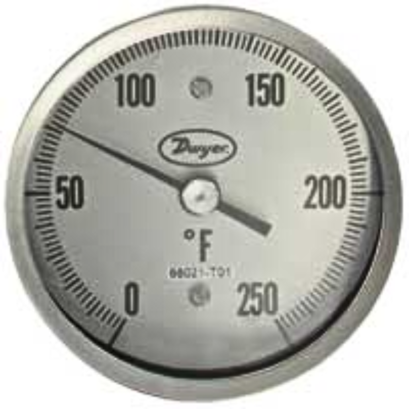 Nhiệt kế lưỡng kim vệ sinh, kích thước kẹp 1,5 “, thân 4,5”, phạm vi 0 đến 250 ° F. |